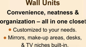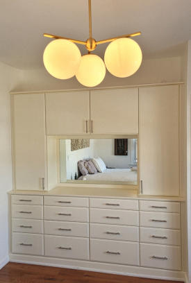 Mirrors, make-up areas, desks, & TV niches built-in.